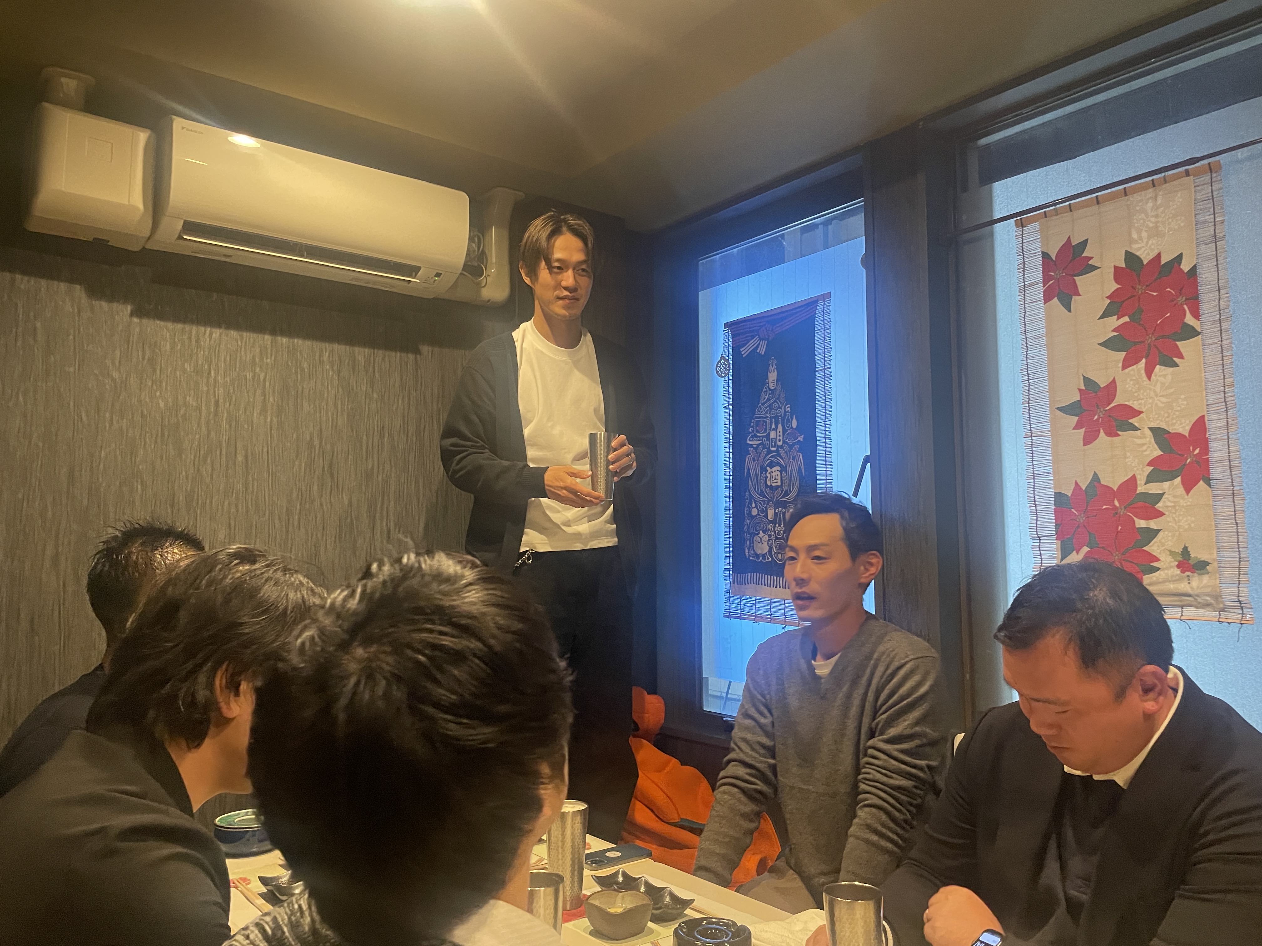 はじめに、同会会長である瀬賀氏に挨拶頂き、岩本副会長の乾杯の挨拶のち開宴となった。